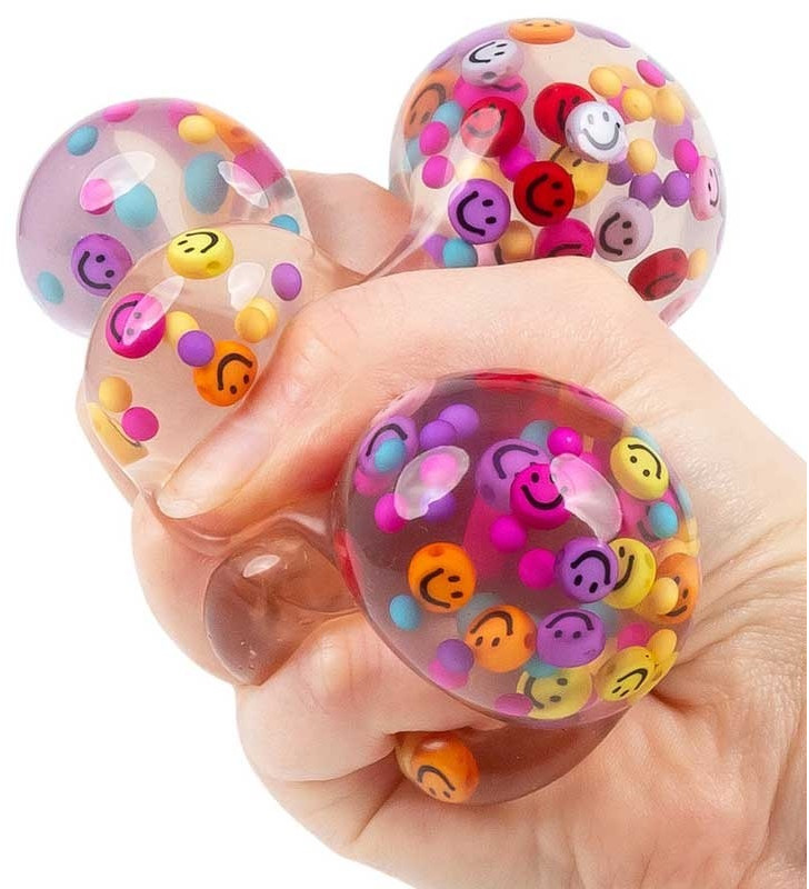 - Retro smiley face squishy stress ball.