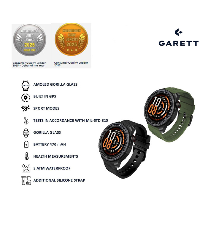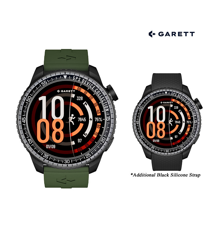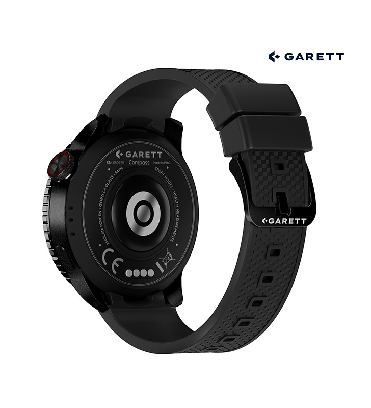 Garett COMPASS GPS Smartwatch | BLACK STEEL (with Additional Black Silicone Quick Release Strap)