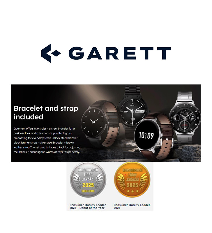 A smartwatch that looks like a classic watch. The Garett Quantum focuses on design first, without sacrificing the smart features you actually use every day.