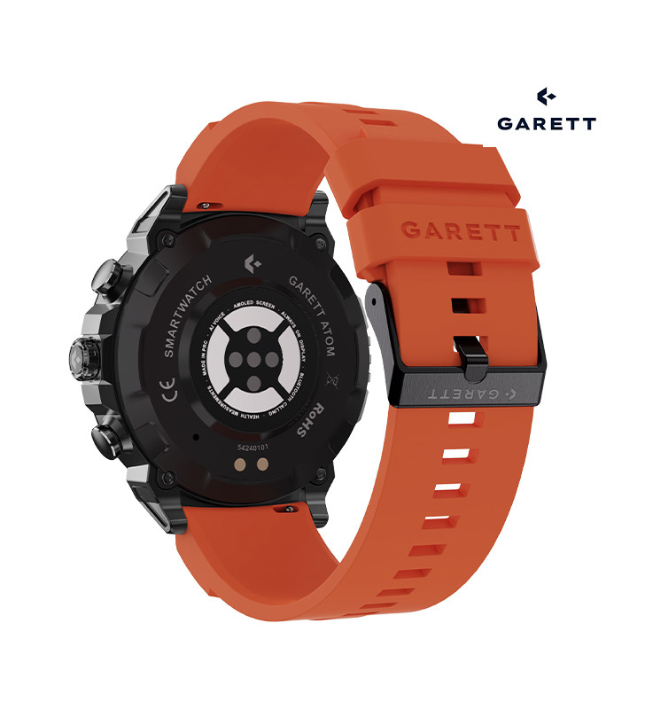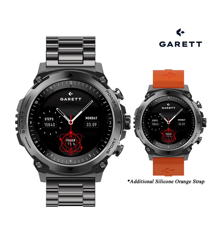 Garett ATOM Smartwatch | BLACK STEEL (with Additional Orange Silicone Quick Release Strap)