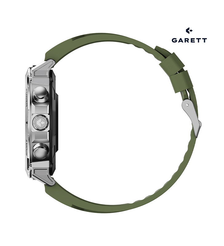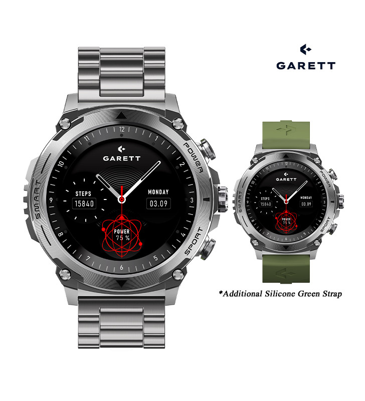 Garett ATOM Smartwatch | SILVER STEEL (with Additional Green Silicone Quick Release Strap)