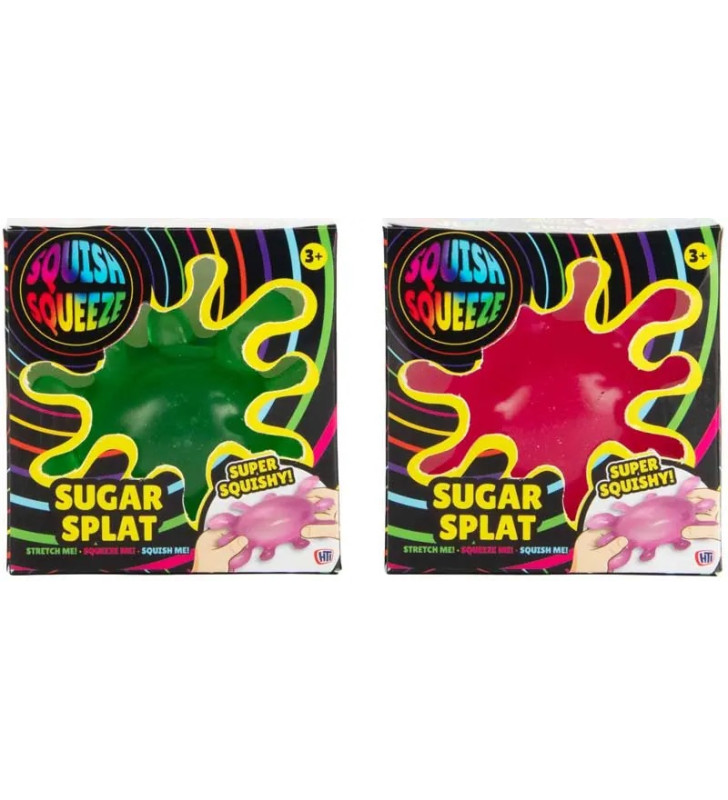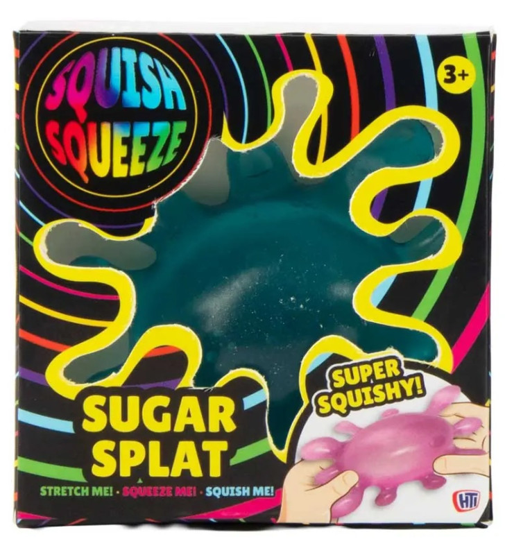 - Colourful sugar splat squishy with a soft, stretchy texture and satisfying filling.