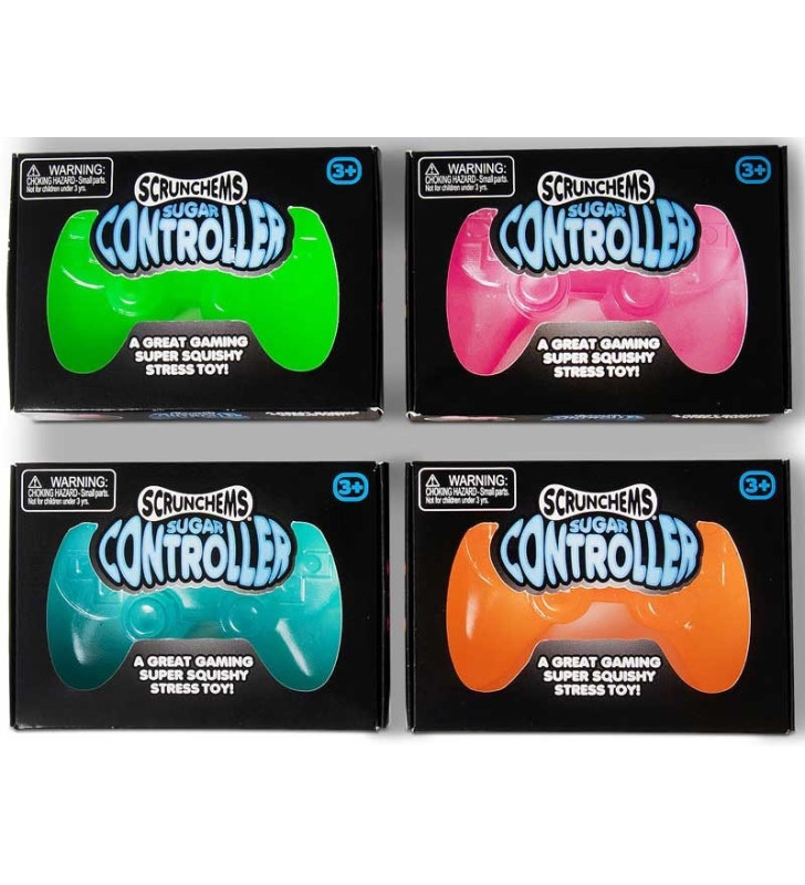 Game controller-shaped squishy filled with sugar gel, designed for stress relief and gaming fans.