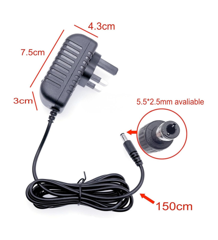 • DC Plug Size: 5.5mm × 2.5mm