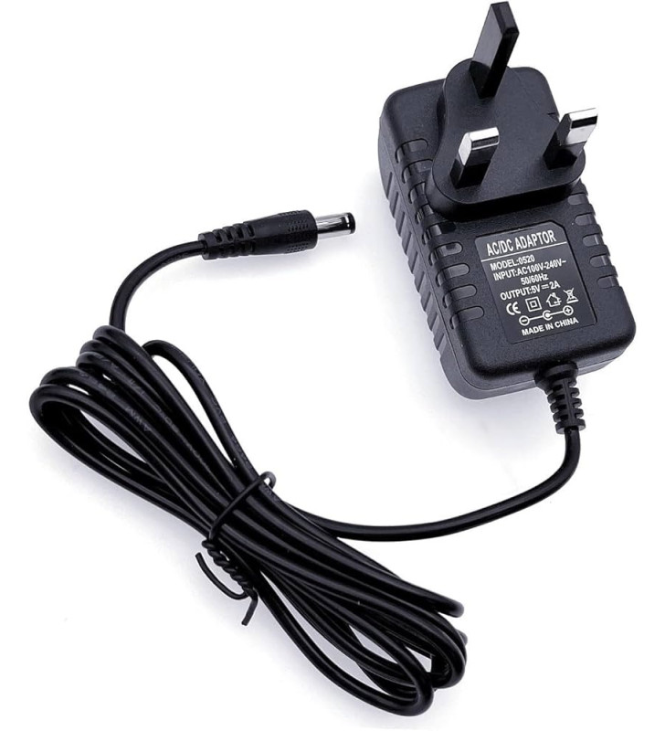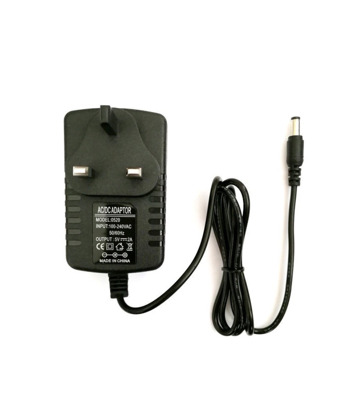 - 5V 2A AC/DC IE/UK power supply adapter with 5.5mm × 2.5mm DC plug.