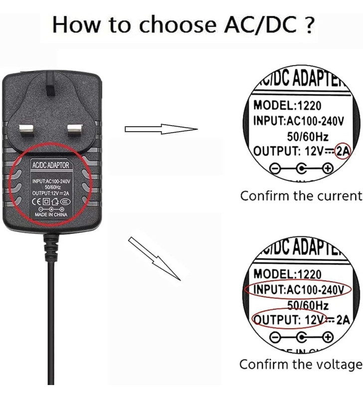 Please ensure that your device requires 12V DC and does not exceed 2A current before purchasing. Using an incompatible power supply may cause the device to malfunction or damage the adapter.