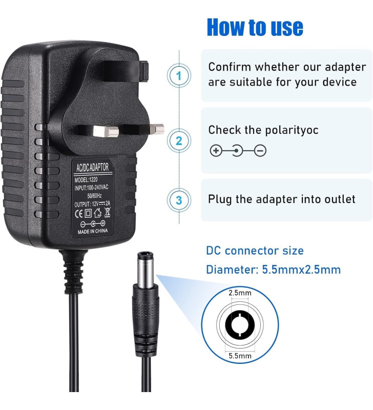 Suitable for many devices that require 12V 2A power supply, including: