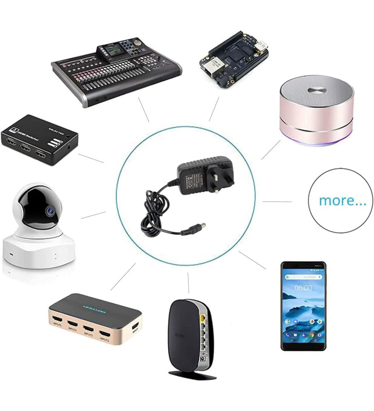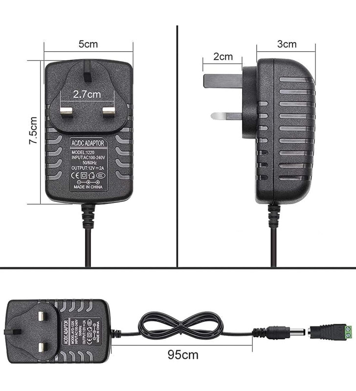- Ideal for LED strip lights, CCTV cameras, routers and other 12V electronic devices.